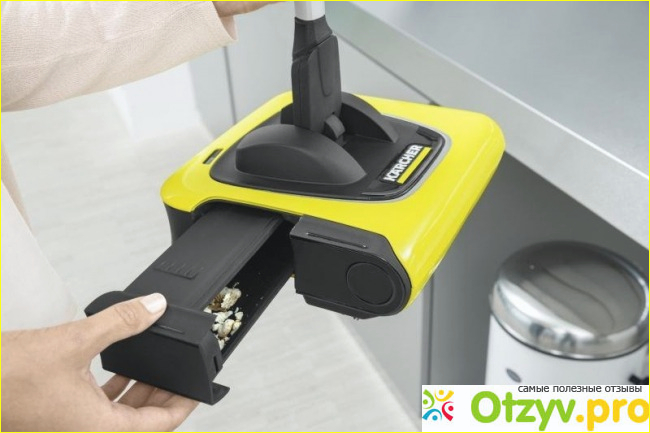 К преимуществам я безусловно отношу его удобство. Вам не надо волочь за собой пылесос, перед вами труба с насадкой из пылесборника. Сам пылесборник преставляет собой циклонный фильтр, объемом 0,37 литров, его очень удобно обслуживать, достаточно лишь ногой нажать кнопку как он сам отходит от насадки. В этом плане очень удобно. Работает он на аккумуляторе, хватает его на 30 минут работы, то есть вам не придется со шнурами возиться и тратить электроэнергию. И это еще одно важное преимущество электровеников. В-третьих, он не занимает много места при хранении. Ну и конечно же довольно неплохо справляется с загрязнениями, контейнер правда довольно быстро забивается.