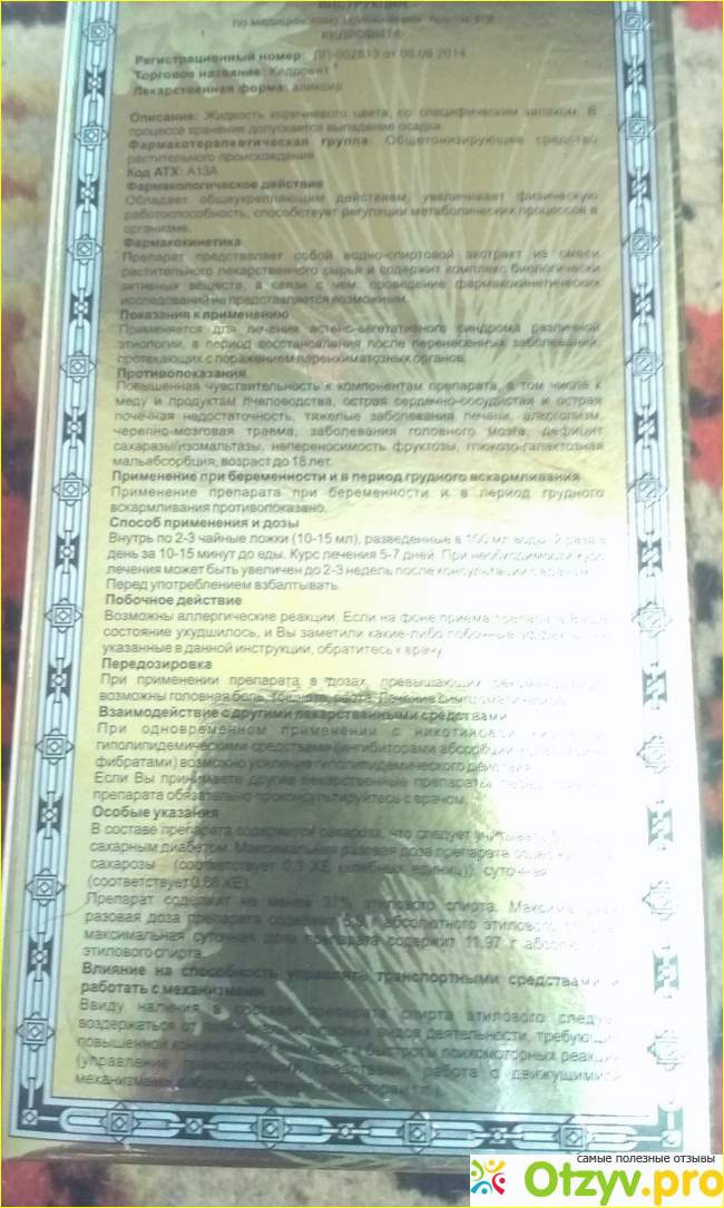 К эликсиру " Кедровит" прилагается подробная инструкция по применению. Обязательно ознакомьтесь, так как имееются противопоказания, побочные действия и другая важная информация для потребителя. Возрастные ограничения: только лицам старше 18 лет.