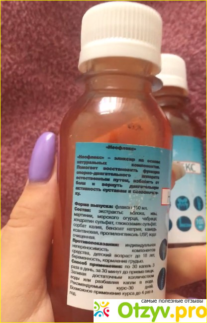Именно такая добавка однажды мне попалась на глаза в виде капель «Неофлекс», которые почему-то в интернете называют эликсиром. Продавцы и производители также называют их таким громким названием, хотя на мой взгляд это просто общеукрепляющий БАД. Цена за 1 бутылочку ёмкостью 100 миллилитров составляла 390 рублей. Согласитесь не такие большие деньги, чтобы немного помочь своему здоровью. Всего лишь по цене небольшая палочка копченой колбасы, от которой будет точно больше вреда чем пользы. А тут как бы растительные экстракты, где хотя бы много витамин. Поэтому я заказала это средство просто так на пробу. Далее приведу немного информации об этом якобы суставном "эликсире" из интернета.