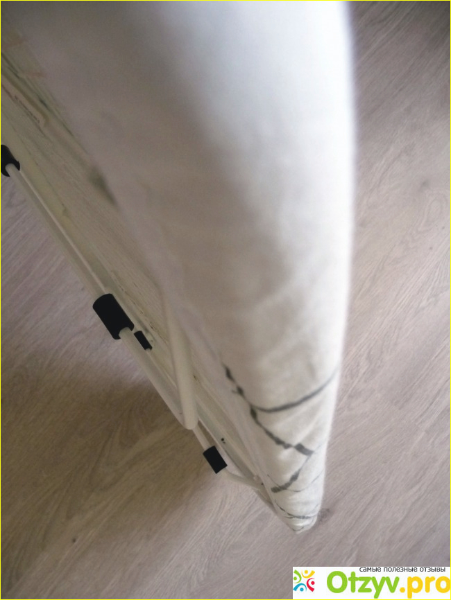 Из того, что еще меня не устраивает, так это то, что прослойка между "сеткой" и тканью очень тонкая. Если гладить на ней вещи, на которых отпечатываются "линии при глажке, то остаются "клеточки", которые портят внешний вид одежды.