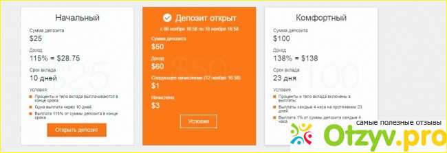 Радует это разнообразие, позволяет обхватить все возможные варианты - от маленьких , пробных вложений до крупных инвестиций. На представленных выше картинках условия работы различных планов.
