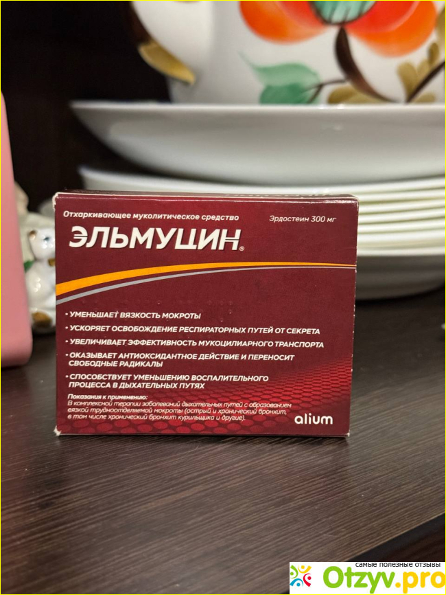 Доброго времени суток, хочу поделиться с вами своим недавним открытием – препаратом Эльмуцин. Это современный отхаркивающий препарат, который оказывает тройное действие: защищает легкие от табачного дыма, уменьшает вязкость мокроты и облегчает ее выведение. Познакомилась с ним случайно, подхватила ОРЗ с сильным кашлем и трудно отходимой, вязкой мокротой.