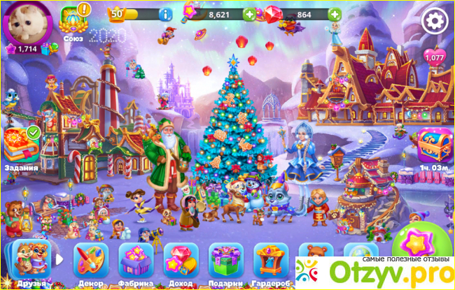 Тут можно не только заниматься растениеводством, но и наряжать снегурочку и деда мороза, а посередине поляны бегает волчонок. Ему тоже необходимо набирать баллы для уровней.