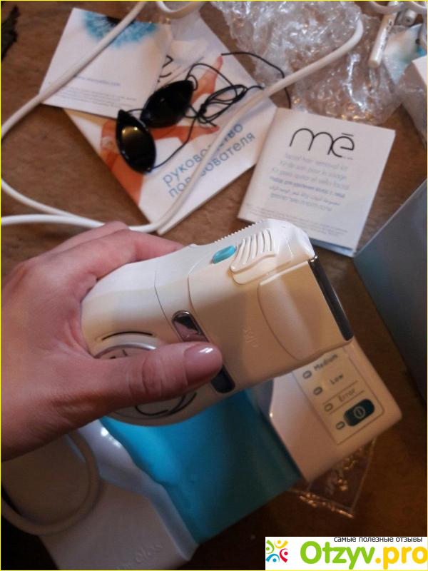 Подгонка деталей достаточно точная. Удобно ложится в руку. В подарок к нему еще идут защитные очки. Там есть удобный индикатор зарядки картриджа. В комплекте лампа, рассчитанная на 100.000 вспышек. Хотя есть аналогичная модель эпилятора на 5400 вспышек, стоит она конечно немного дешевле, но такое количество вспышек я считаю маловато. Так как это слишком мало, если надо удалить полностью волосы с зоны бикини, подмышки и на ногах. Данная модель эпилятора без проблем удаляет даже седые и светлые волосы. У него довольно высокая скорость обработки и уникальная Элос технология. Данный товар сертифицирован. После проведения процедуры с эпилятором Elos, на вашей коже вообще не остается следов покраснения, раздражения и ожогов. Обработка кожи с ним совершенно безболезненна, в связи с низким уровнем излучаемого заряда и небольшой мощности электроприбора.