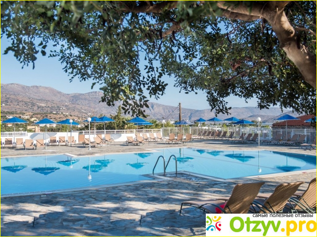 Находится отель в заливе Мирабелла, особо больших волн нету, всегда дует ветерок, но это даже хорошо — не так жарко. Недалеко Элунда небольшая деревенька, там довольно тихо. В десяти минутах езды на автобусе Агиос Николос, вот туда очень рекомендую. Есть интересный археологический музей, много ресторанов, магазинов и просто потрясающей красоты в центре города озеро!