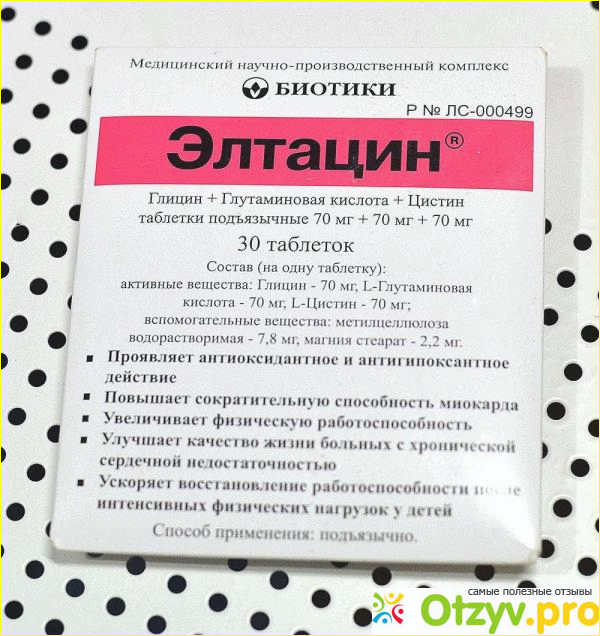 Всегда имела проблемы с сердцем. А из-за постоянных стрессов на работе заработала аритмию, в добавок ко всему еще и давление скачет, особенно по утрам и к смене погоды. Однажды пожаловавшись врачу на свое состояние, мне был назначен Элтацен в комплексе с еще одним препаратом для сердца. Если честно, то эффективность Элтацина ставила под сомнение. Ну что там за состав? Аминокислоты, глицин. Но ведь помогает! И сердце мое теперь в норме и ритм не нарушен и с давлением все гуд. Принимала около 3-х месяцев, по схеме.