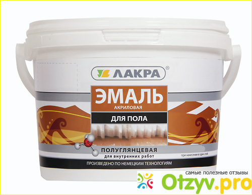 Эмаль Лакра полуглянцевая. Подходит для покраски дерева и бетона. Разбавляется водой. Можно красить пол как кисточкой, так и валиком. Время высыхания - 4 часа. Полное высыхание от суток до пяти. Смотря сколько слоев покраски будет. Мне хватило двух слоев. Но это я сделала зря. И одного слоя было бы достаточно!