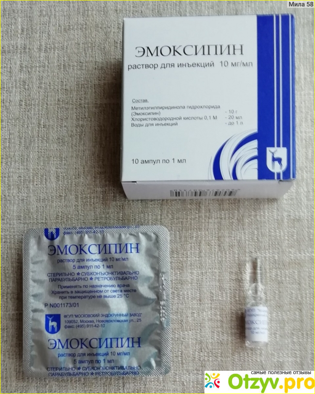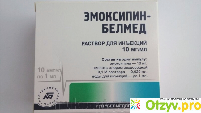 Стоимость: Эмоксипин раствора для инъекций по 10мг/мл, по 10 штук: 354 рубля