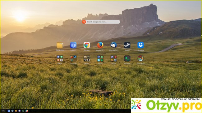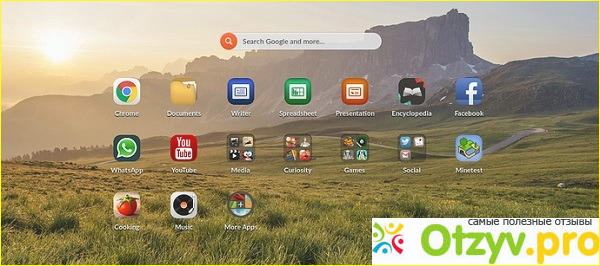 Рабочий стол максимально прост, все иконки на нем расположены сразу, а поиск файлов идет как по жесткому диску, так и сразу в поисковой системе Google.