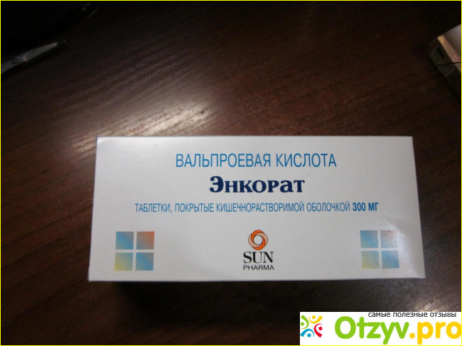 Герой моего обзора препарат Энкорат, который выпускается индийской фармакологической компанией Сан Фармасьютикал Индастриз Лтд. В составе препарата содержится вальпроевая кислота в дозировке по 0,3 грамма в каждой таблетке, относится лекарство к противоэпилептическим средствам. Оказывает благоприятное воздействие на нервную систему, оказывает противосудорожное, миорелаксантное и седативное действия. Также при терапии значительно улучшается общее самочувствие пациента, его настроение, психическое состояние (если есть неврологические и психические нарушения). Подавляет чрезмерную активность нейронов в коре головного мозга, снижает передачу нервных импульсов, ограничивает распространение возбуждения нервных импульсов и препятствует развитию эпилептических приступов. Также вальпроевая кислота оказывает благоприятное действие в регуляции калиевых ионов, усиливает активность гамма аминомасляной кислоты. Активное вещество быстро всасывается в кровотоке, максимальная концентрация вещества наблюдается через пару часов от начала приема таблетки.