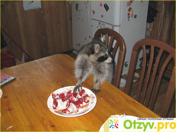 С другими домашними питомцами уживается. Но есть несколько серьезных моментов, которые необходимо учесть - енот может напасть на ваших гостей принимая их как чужаков, которые вторглись на его территорию. Комнатные растения являются предметом особого любопытства - стоит позаботиться об их защите. Все владельцы в своих отзывах указывают на сильный специфический запах енота.