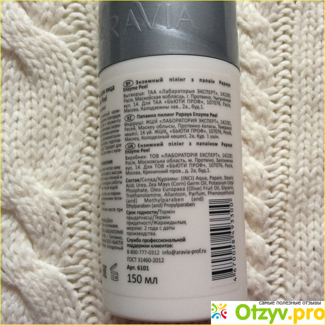 Марка Aravia Professional относится к профессиональному сегменту, ей пользуются профессионалы в косметических салонах. Но их составы располагает к использованию и в домашних условиях, без вреда кожи. Я выбрала именно энзимный пилинг, так как он подходит идеально для моей кожи 25+, а также мне понравились описанные производителем обещания.
