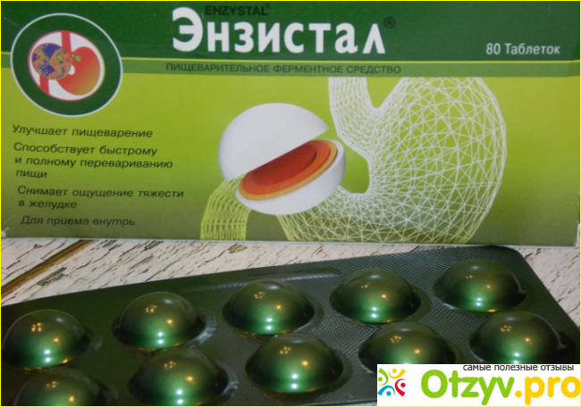 У него всегда пучит живот после обильной мясной пищи, типа шашлыков и после фруктов( виноград, груши). Всего 1 таблетка сразу после еды снимает все неприятные симптомы при недостаточности пищеварения. Уже через 20 минут уходит тяжесть в желудке и отрыжка. Несколько раз Энзистал спасал меня при переедании в праздники, а также я всегда беру его с собой во все поездки. При пищевом отравлении Энзистал тоже можно пить, чтобы запустить процесс пищеварения.