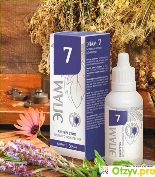 Эпам 7 в своем составе имеет разные компоненты, экстракты растений, вытяжки, которые обладают широким спектром действия. Натуральные компоненты способны оказывать желчегонное и мочегонные действия, помогая очищать организм, стимулируя работу сердца и всей системы. Благодаря натуральным компонентам, организм получает стимулирующее и успокаивающее действия на работу ЦНС.