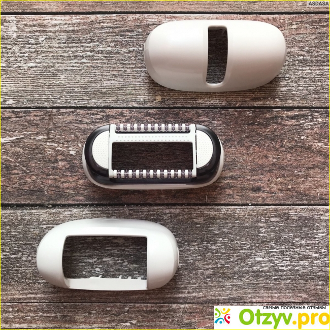 Сам корпус эпилятора сделан из качественного пластика молочного оттенка с матовыми вставками. Посередине прибора находится колесо переключения скоростей в сиренево-розоватом оттенке. Оформление современное, модное, привлекательное, специально для женщин гламурный.