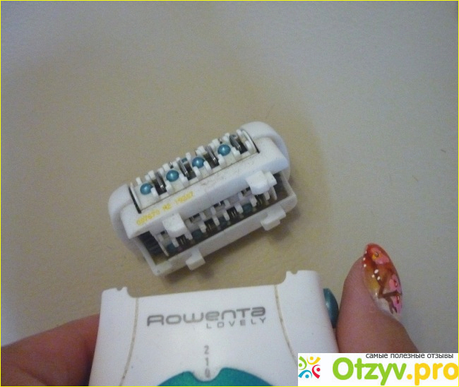 На модели эпиляторе Rowenta EP4760 сбоку, справа (на фотографии это видно), есть кнопочка бирюзового цвета. Нажимаем и верхушка отскакивает. Вставляем другую.