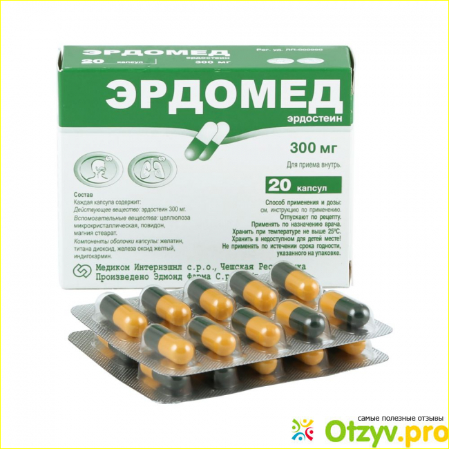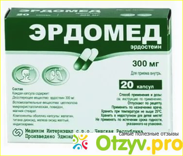 Прежде всего, необходимо предупредить, что вам следует заниматься самолечением, так как любое заболевание может маскироваться под серьезные патологии. Обязательно срочно обратитесь к врачам, если у вас появился кашель, гнойная или кровянистая мокрота, повышенная температура, общая слабость. Герой моего обзора - препарат Эрдомед, он относится к лекарственным средствам для снижения вязкости мокроты, эластичности мокроты, ускорения выделения слизи из дыхательных путей, облегчения кашля, улучшения транспорта кислорода и улучшения эпителизации дыхательных путей. Композиция содержит активное вещество эрдостеин в различных формах: капсула по 300 мг активного вещества, в одном пакетике гранулы для приготовления раствора по 225 мг эрдостеина, в гранулах для приготовления суспензии по 7 г эрдостеина. Относится к группе: Секретолитики и стимуляторы моторной функции дыхательных путей. Препарат обладает антиоксидантными свойствами, переносит свободные радикалы, оказывает защитное действие на дыхательные пути, предотвращает риск осложнений. Положительные терапевтические результаты начинают проявляться где-то на третий или четвертый день от начала лечения. Следует отметить, что действующее вещество не оказывает негативного воздействия ни на желудочно-кишечный тракт, ни на сердечно-сосудистую систему, не обладает нефротоксичностью, гепатотоксичностью.