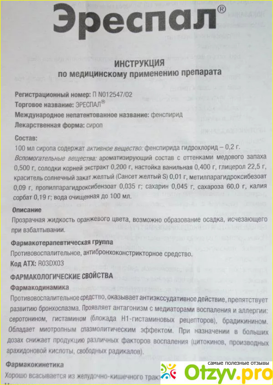 Препарат Эреспал, также как и другие современные лекарственные средства, имеет довольно таки подробную инструкцию по его применению. Согласно ей следует, что данный препарат выпускается еще и в виде таблеток для приема внутрь, но сегодня мы рассмотри именно сироп.