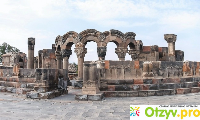 Более печальна судьба храма Звартноц. Он дважды разрушался и после второго обрушения его не стали более восстанавливать. Предположительно, причина нестабильности с последующими разрушениями связана не только с сейсмической активностью, но и с конструктивными просчетами. Развалины храма Звартноц исследуются и сохраняются. В плане храм был круглым из темно-бордового камня с тремя ярусами. Элементы отделки колонн и фризов указывают на влияние Месопотамии. Когда он стоял, наверняка производил волшебное впечатление, но даже то что осталось очень красиво, ажурно и впечатляюще.