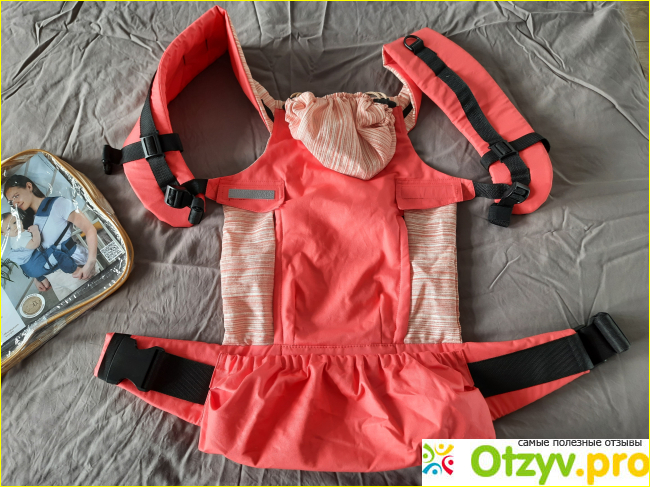 На поясе у рюкзака есть большой и вместительный карман. В него можно убрать сам рюкзак вместе с лямками и получается аккуратная сумочка-хипсит. В таком варианте его удобно и хранить, места много он не занимает. Идя на прогулку с ребенком, я кидаю его в сумку от коляски, и если у меня малышка недовольна лежанием, то я ее пересаживаю в эрго-рюкзак. Справляюсь одна без помощи со стороны.
