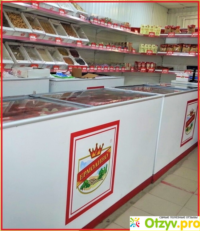 Продукцию Ермолино не встретишь в крупных торговых сетях. Она продается в фирменных магазинах, куда она доставляется непосредственно от производителя.
