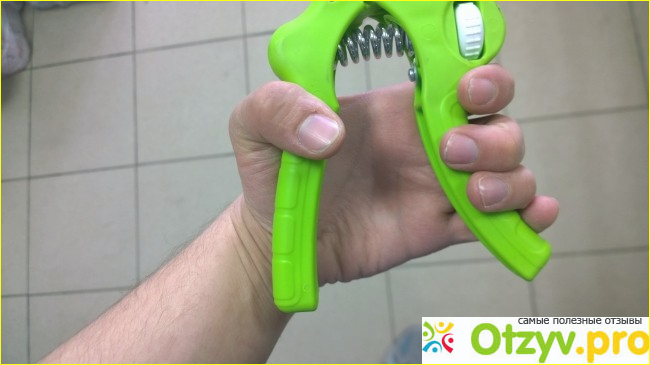 Данную модель кистевого эспандера я приобрел если память мне не изменяет в далеком две тысячи двенадцатом году и с тех пор эспандер служит мне верой и правдой если можно так сказать, конечно не обошлось и без минусов этого эспандера ведь нет ничего вечного. Во первых я бы хотел заострить внимание на том что заявленный уровень нагрузки данной модели составляет сорок килограммов что в принципе отлично подойдет для тренировок на уровне любителя или же профессионалов но лишь в качестве разогревающего, в моем случае же он мне подошел для тренировок ведь достаточно хороший уровень нагрузки для меня как для любителя вполне хорошо позволяет нагрузить мышцы предплечья и мышцы кисти.Вообще модель состоит по большей части из пластика и сам корпус представляющий из себя две соединенные металлической клепкой рукояти между которыми установлена пружина которая собственно и создает нагрузку во время использования и слева расположено колесико белого цвета которое регулирует уровень нагрузки и после двух лет использования колесико стало куриться очень тяжело и в каком то месте видимо внутри с точилось и пружина при использовании давит на колесико и она проскальзывает вниз и максимальную нагрузку соответственно невозможно установить и это является его весомым минусом.