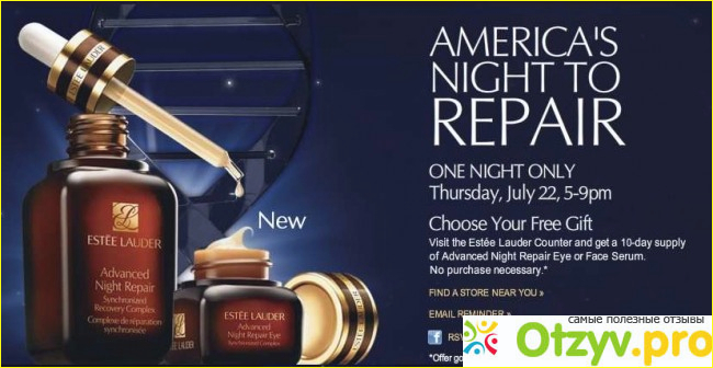 Хочу оставить отзыв об этом чудо-средстве от Est?e Lauder. Масло Advansed night repair идеально увлажняет кожу лица, делает ее бархатистой и нежной. После одного месяца ежедневного использования я заметила улучшения, исчезли мелкие морщинки, кожа стала более живой и красивой.