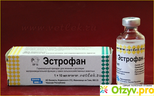 Эстрофан является тривиальным названием, основное химическое вещество, которые здесь применяются - это гормон клопростенол. Он характеризуется достаточно многогранным действием на организм при парентеральном введении. Прежде всего характеризуется лютеолитическим воздействием на яичниковое желтое тело, способствует снятию ингибирующего воздействия прогестерона на гипоталамо-гипофизарный комплекс, производит запуск роста фолликулов в яичнике. Таким образомвозрастает содержание эстрогеновых гормонов в крови. Такие гормональные изменения способствуют тому, что появляется так называемая половая охота. Также данное соединение способствует сокращению матки. В организме клопростенол подвергается быстрым метаболическим процессам, и на протяжении суток полностью удаляется через почки. По типу действия на организм данный гормон является веществом со средним классом опасности.