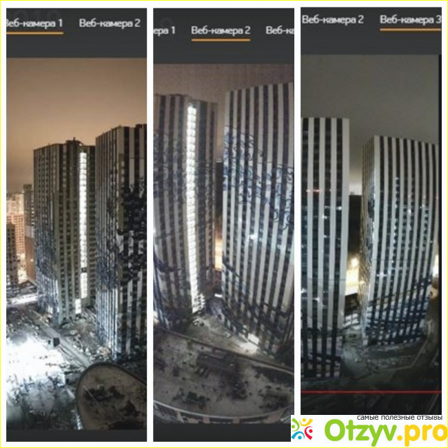 Но одна фишка: всё, что мы там видим, — это графика, проект, презентация что ли. Ведь еще не все части комплекса построены. А вот что происходит в реале в сию секунду на стройке, можно увидеть на реальных камерах. Камеры там на самом деле есть, их 3. Вот скрины с каждой. Скрины сделаны 31 октября в 23.00 по московскому времени.