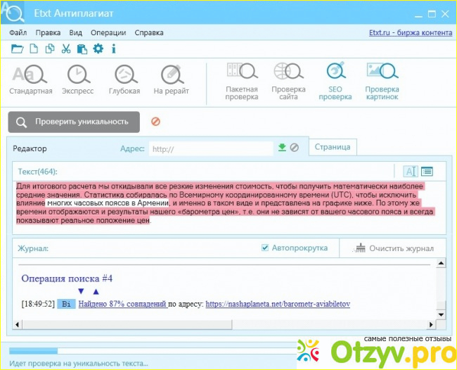 6. Проверка текста. etxt - это еще и сервис проверки текста на уникальность, на поиск орфографических ошибок, водности и заспамленности текста, а также других показателей.