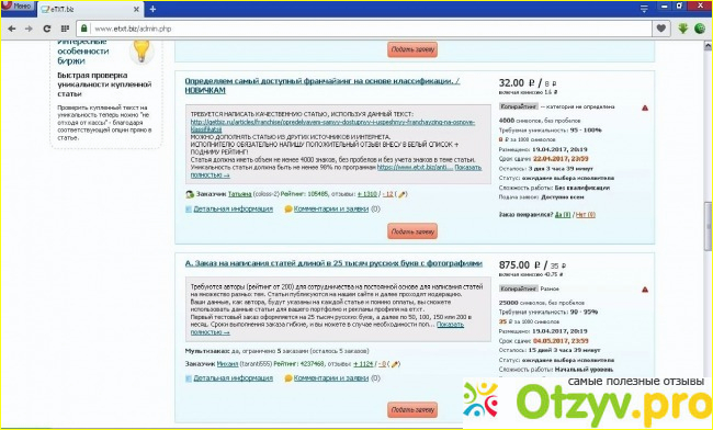 Утром я беру заказ и при том он срочный нужно было написать простую статью на тему автоломбарды в Нижнем Новгороде, у меня выходной, заказ я выполнила за 1 час, отправляю на проверку, спустя пару минут, заказ мне возвращают на доработку, с примечанием "Не указаны ключевые слова", при том в задании это не указано. Ладно, выделяю, отправляю повторно. Заказ мне вновь возвращают с тем, что в задании якобы значилось, что статья должна быть с уникальностью 85%, а я написала ее 94%. Ладно переделываю, вновь отправляю. И так несколько раз, до тех пор пока вышло время.