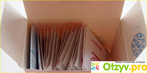 Выглядит средство следующим образом: картонная коробка, в которую вложены пакетики - саше, их может быть 30 или 60 штук. Один пакетик весит 3 г. На оборотной стороне пакета размещена информация от производителя: рекомендации по применению, дозировка для пациентов разного возраста, возможные противопоказания и состав.