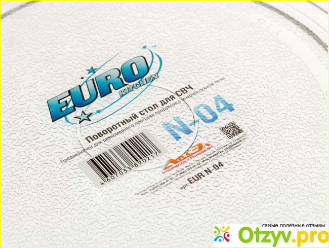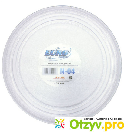 Euro Kitchen N-04 - тарелка для СВЧ, универсальная тарелка с крестовиной. Диаметр тарелки 272 мм. Изготовлена естественно из специального жаропрочного стекла, т. е. из особого закалённого стекла. Такие тарелки очень легко моются. Такие тарелки подходят для самых популярных брендов микроволновок. Список очень огромный, поэтому заходите на сайт и можете посмотреть сами.