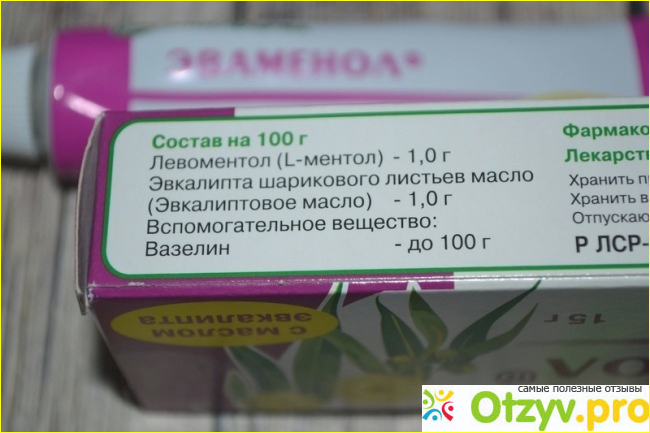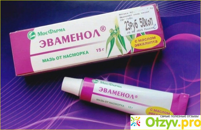 Эваменол обладает сосудосуживающим, противовоспалительным и анестезирующим действием, отлично подходит для лечения ринита острой и хронической формы. К тому же действие мази позволяет облегчить носовое дыхание, это достигается за счет сужения кровеносных сосудов.