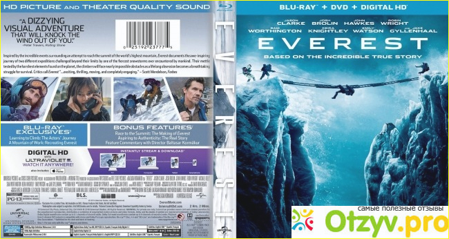 "Эверст" - зрелищный фильм, отлично отыгранный кастом проверенных хороших актеров, рассказывающей о реальной тяжелой истории, которая учит ценности жизни, учит тому, что есть мечты, за которые некоторые готовы отдать жизнь, учит храбрости, наоминает о том, как важно ценить каждую минуту с родными. Я рада, что у меня была возможность посмотреть фильм в кинотеатре, а пережить те же ощущения я смогу с помощью blu-ray издания "Эвереста".