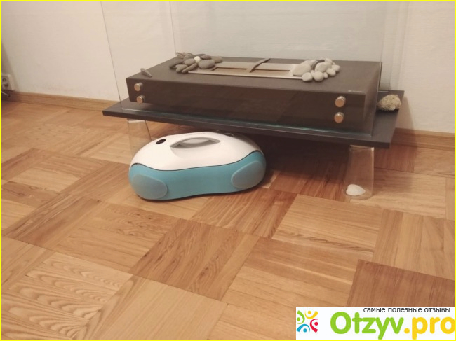Это свекровь купила, у нее такой же, но я никогда не видела его в действии. Полотер - это устройство, имеющее два диска с салфетками и контейнер для воды. При запуске полотера (у него несколько режимов работы) круги с салфетками начинают интенсивно вращаться и с нажимом мыть пол. Не просто грязь развозить, а именно мыть! Он мне здорово оттер пятна на кухне - это было его боевое крещение)) А если предварительно добавить в воду немного моющего средства, так пол будет просто сверкать! Я лично не люблю мыть просто водой и моющее добавляю всегда. После уборки полотер ставлю заряжаться, как телефон, на подзарядку. Вода подается капельным способом, поэтому за ламинат можно не переживать, он не намокнет. Ухаживать за полотером, как и за любой другой техникой, необходимо. Но это очень просто - нужно только стирать и просушивать салфетки. ни в коем случае не оставлять их после уборки мокрыми, иначе сгниют, это же ткань. Если в контейнере осталась вода, ее нужно вылить. Вот и все! Полотер здоро облегчил мою жизнь! Я достаю швабру раз в три недели и раз в три дня запускаю Эврибот. Классный девайс для тех, кто уборке предпочитает более интересные и полезные занятия!
