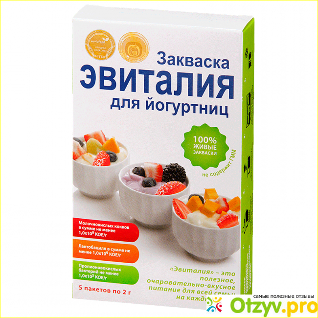 Сейчас эвиталия выпустила такой продукт, как закваска для йогуртниц, что сильно может привлечь внимания своей яркой и ягодно - фруктовой упаковкой, устоять от которой смогут не многие, особенно та, категория людей, кто любит готовить, делать различные народные закваски, а тут уже все готово, да и помочь как обещает производитель смогут, но на деле, результат может не случится и только время зря потратите. Но все попробовать если сильный интерес есть приготовить в йогуртнице, но для этого требуется еще молоко купить. Нужно приобрести 1 литр молока, и предварительно его в кипятить на огне. Затем нужно еще взять 20 мл воды и развести саму закваску в прозрачной баночке и затем растворить в молоке, ну конечно его нужно еще и хорошенько помешать. Вот и готов продукт лекарственный к употреблению.