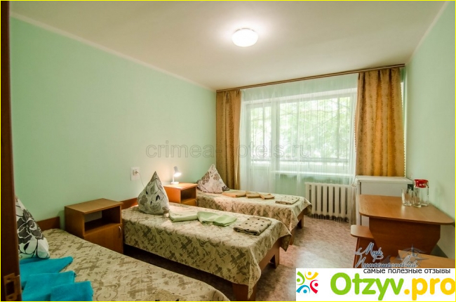 Мы оздоровлялись семьей, были с муже и двумя детьми. Проживали в трёхместном номере, устанавливали дополнительное койка-место. Трёхместные номера больше по площади, имеется свой балкон. По наполняемости всё тоже самое. Белье в номерах чистое, новое, выдают пляжные полотенца. На этаже есть утюг.