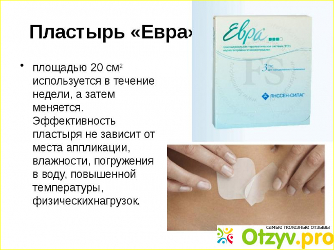 Пластырь Евра - это надёжная защита от нежелательной беременности, не нужно пить противозачаточные таблетки, которые негативно отражаются и на желудке, и на печени, да и с весом всё в полном порядке, лишние килограммы не прибавились. Так что, я советую тем, кто не пробовал этот контрацептив, попробуйте, может и вам подойдёт.