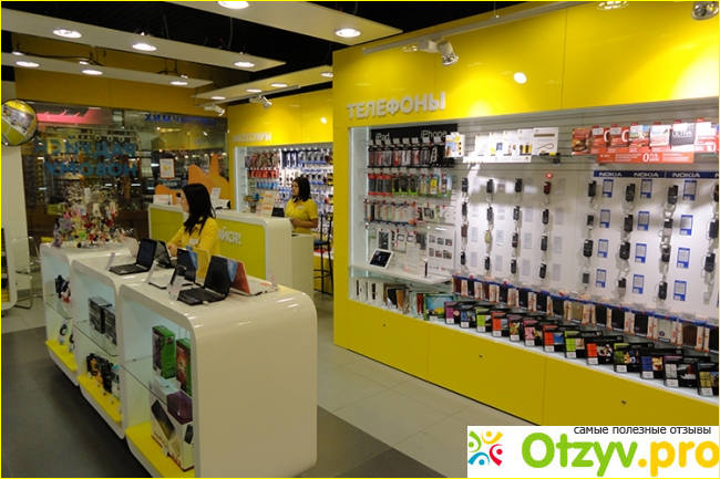 Все магазины Евросети внутри и снаружи имеют одинаковый дизайн - это яркое и характерное отличие магазинов этой компании.
