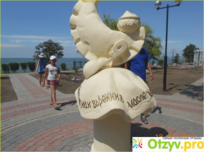 Набережные на всех организованных пляжах в ейске хорошо обустроены, чистые, красивые, утопающие в цветах и всяких забавных памятниках. Например, есть памятник варенику. Есть возле одного кафе интересная скульптурная композиция украинских бабы и мужика в народных одеждах с с огромным бутылем самогона и караваем. Туристы очень любят делать смешные фотографии в обнимку с ними.