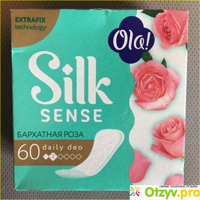 Сами прокладки достойные - удобные в ношении, адаптируются под форму тела, легко приклеиваются и снимаются, не отлипают самостоятельно, мягкие на ощупь, поэтому реакций на коже у меня не было, и впитывают хорошо. Раньше дизайн у пачки был другой и мне меньше нравился. Сейчас они даже называются OLA! Silk Sense Daily Deo Бархатная роза.