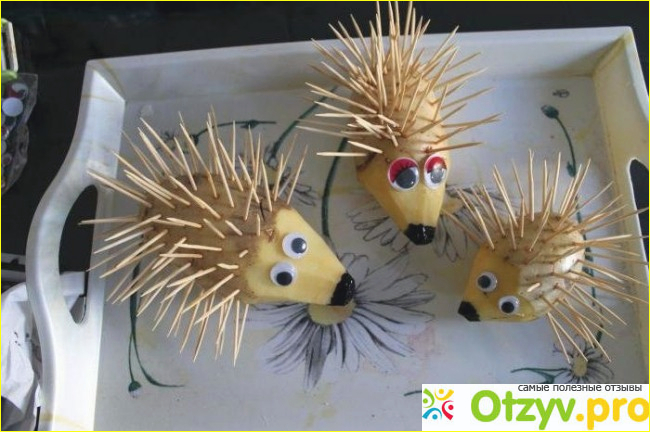 Подобные подделки можно организовывать в детских садах и школах по творчеству, в горлдах и поселках. Уверена, что именно такой способ и такая подделка займет ребенка в скучный и сырой осенний день. Подарит ему массу желания воплощать свое творчество, моторику рук и воображения, а потом и если подарить такую подделку маме, то это будет еще один приятный бонус и воспитательному учреждению и самим детям и их родителям. Не нужно боятся вводить новые творческие мероприятия для своих детей, они будут только рады научится новым методикам и творчествам. КОторые стоит делать в сезонные времена года, это занает время не много, ребенок не устанет выполнять работу из картошки, а в тоже врея под присмотром воспитателей или родителей научится воплощать задание сделать ежика из картошки как творческое развитие и воображение в жизнь.