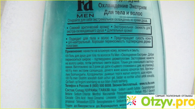 Гель имеет приятный мужской аромат, который наполняет ванную комнату, при принятии душа. Но в аромате нет ощущения холода, но что-то прохладное резкое в нём есть.