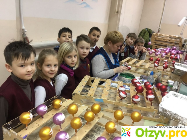 Затем было самое приятное. Посетителям предложили чаю с конфетами, что особенно вдохновило детей. А дальше мастер класс по росписи шариков. Для детей технологию выбрали простейшую. На основу покрывается клей ПВА, после чего все это посыпается блестками. Я думаю, справится и пятилетка. А что еще нужно малышу, который хочет и сам ощутить себя немного волшебником. Были подарки по набору самых дешевых шариков. Но, я все же решила на память о таком событии набрала себе несколько шаров на 2000 рублей. Действительно радуют глаз гораздо больше, чем пластиковые, которые созданы без души на потоке. Рекомендую фабрику, и очень благодарна создателям, за то что предлагают понаблюдать за своей работой.