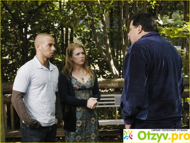 Теперь о центральной экранной паре. Не знаю, о чём думали те, кто подбирал каст, но это определённо провал. Герои совершенно не смотрятся друг с другом. Да, их свела вместе жажда наживы, так сказать, но я не вижу у них будущего, хотя кого волнуют такие мелочи. Наверное я старомодна, но хотелось бы видеть какую-никакую химию, ну или просто интересное взаимодействие. К слову, эти же актёры уже снимались вместе в сериале «Мелисса и Джоуи», но от этого всё равно не легче.
