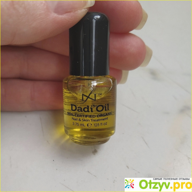 Для себя я давно нашла сильный продукт в виде воска. Он густой, питающий и позволяет интенсивно ухаживать на ночь. Но, также мне хотелось и нечто более легкое, для того, чтобы можно было быстро увлажнить кутикулу на протяжении дня. Так я приобрела натуральное питательное масло для ногтей и кутикулы Dadi Oil. Это небольшой флакон объемом 3,75 мл. Стоил мне 217 рублей. У него очень богатый состав, включающий 95% натуральных ингредиентов. А именно: 21 эфирное масло. Бергамот, ромашка, лемон, лемонграсс, лаванда, авокадо, жожоба, апельсин и другие.