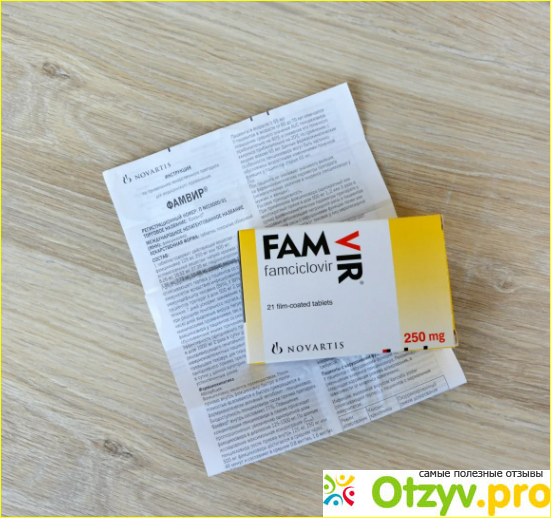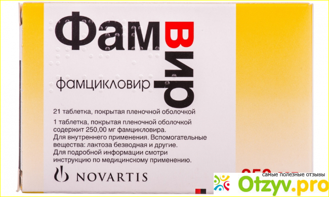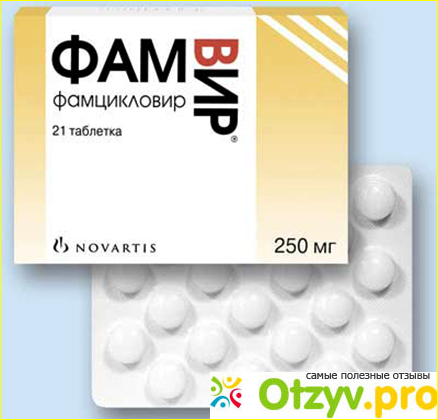 Он назначил много препаратов, в числе которых был Фамвир. Фамвир - противовирусное, как раз от вирусов герпеса. Я пила его целую неделю по 250 мг, трижды в день. Никаких побочных эффектов небыло. Но правда и выздоровление после Фамвира пошло не сразу. но на третий день было заметное улучшение, боль угасала, а пузырьки подсыхали, но немного чесались.