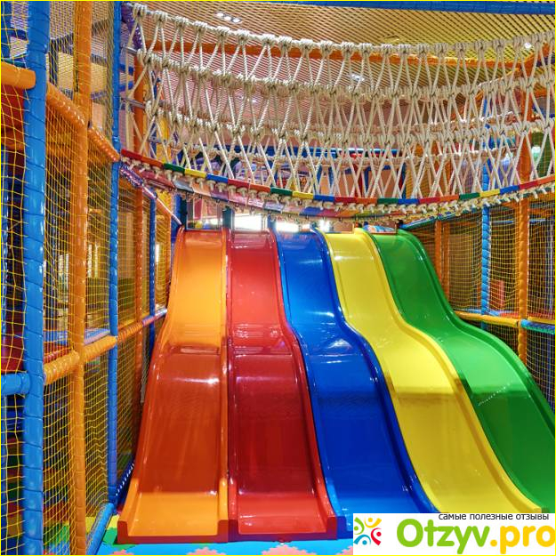 - Понравилось огромное пространство для детей. Очень интересно как для малышей, так и для деток постарше. Да даже взрослым там интересно.- Интерьер, всё очень красиво, стильно. Хорошие просторные комнаты чтобы покушать и попить чай. Покрытия мягкое и удобное. - Безопасность, нет острых углов, все аттракционы безопасны для детей любого возраста.- Меню. Довольно разнообразное меню, для взрослых, для детей, пиццы, коктейли молочные, картофель фри, пюрешки, супчики, котлеты и многое другое. Цены в принципе как и везде. Приемлемо. По напиткам мне показалось дороговато.- Цены в будний день очень привлекательные. Всего 350 рублей и можно развлекаться целый день.