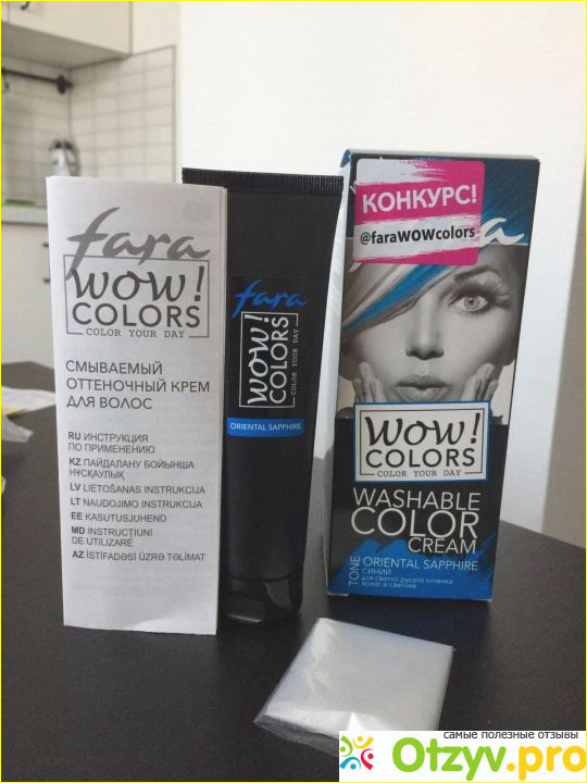 FARA WOW Colors - это новая бюджетная оттеночная краска для волос, выполненная она в виде тюбика с кремом общим объемом в восемьдесят миллилитров. С помощью нее можно придать вашим волосам самые экстремальные оттенки, от розового, до голубого и фиолетового цветов.